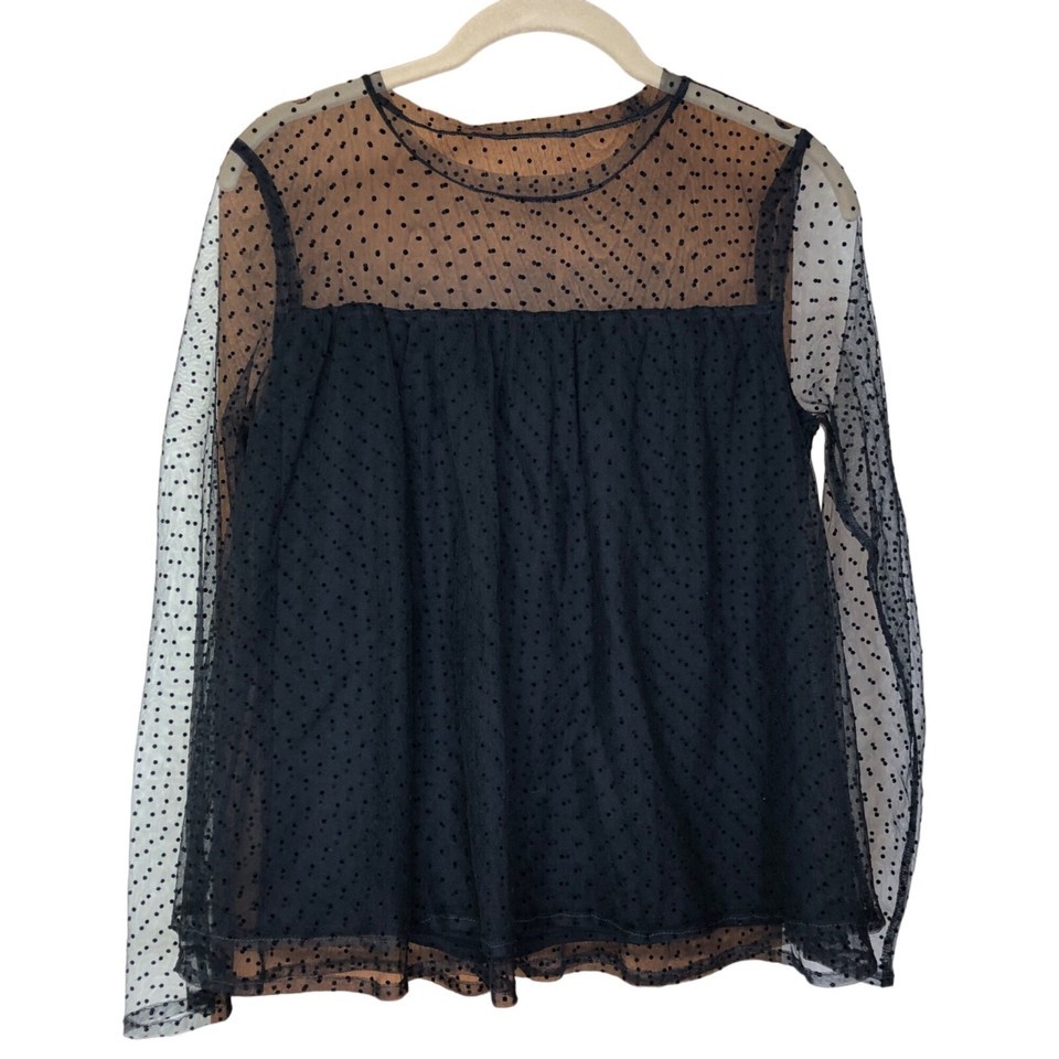 New Black Sheer Polka Dot Long-Sleeve Top XS and similar items