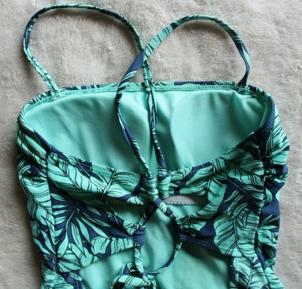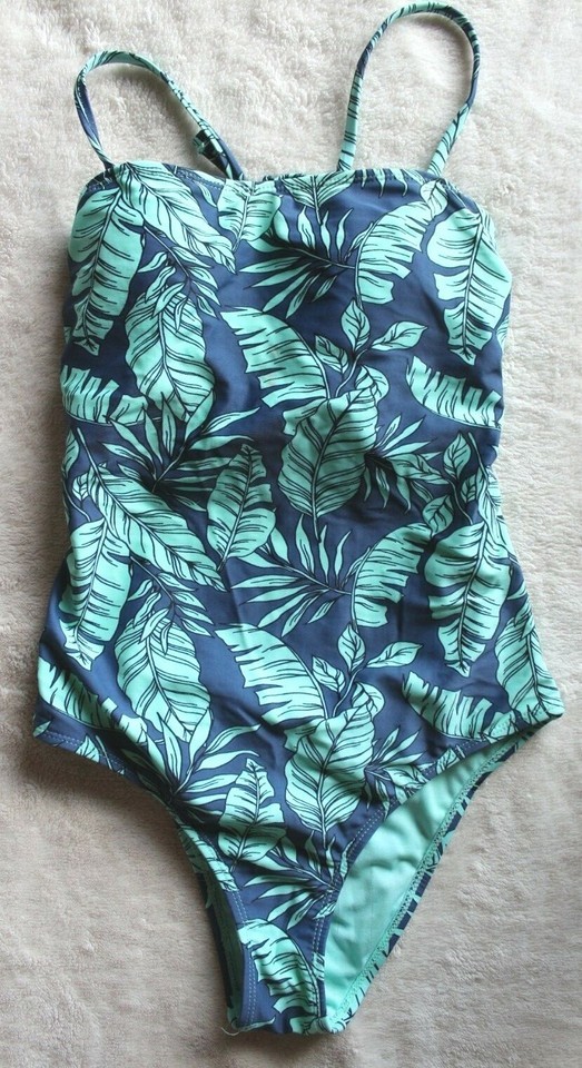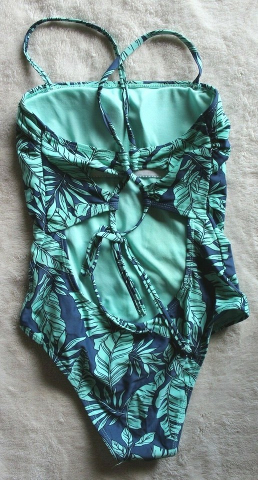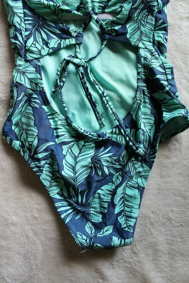 Women's Hot Water Green/Blue Tropical Leaves One Piece Swimsuit Size S