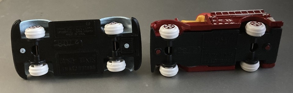 This is a RARE 1988 ERTL Daffy Duck Fire Truck and Tweety Bird in a car Warner Bros WB Vintage Looney Tunes with free shipping. These are from an adult collection.