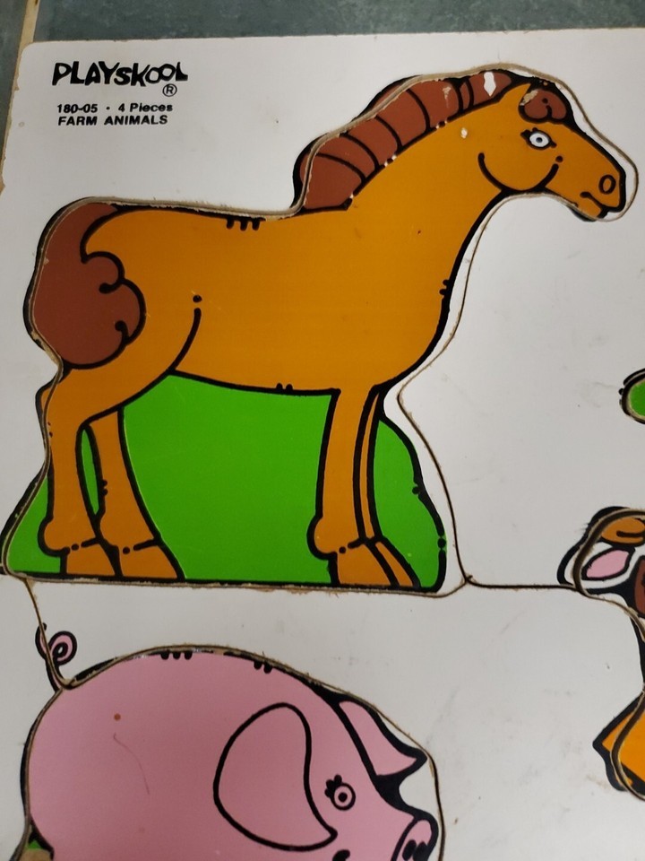 Playskool Farm Animals Wood Puzzle 180-05 Horse Pig Cow Chicken Vintage . Condition is Used. Shipped with USPS Priority Mail.