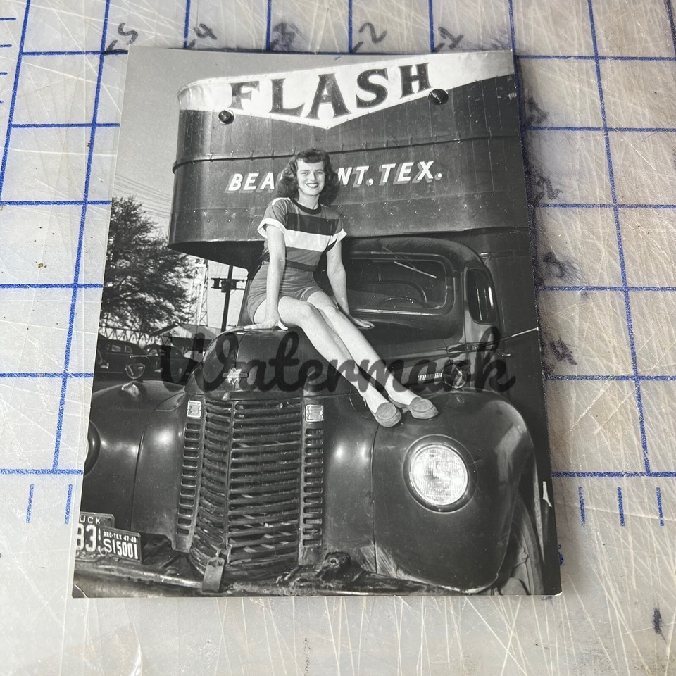 Vintage Photograph Pretty Young Woman Sitting On International Truck Beaumont TX