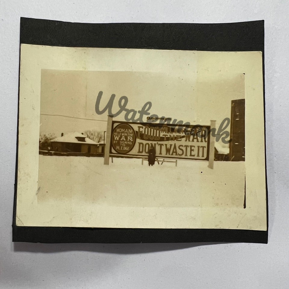 Antique Photograph WWI Sign Woman Help Win The War By Signing The Pledge / Food Will Win the War Don?t Waste It
