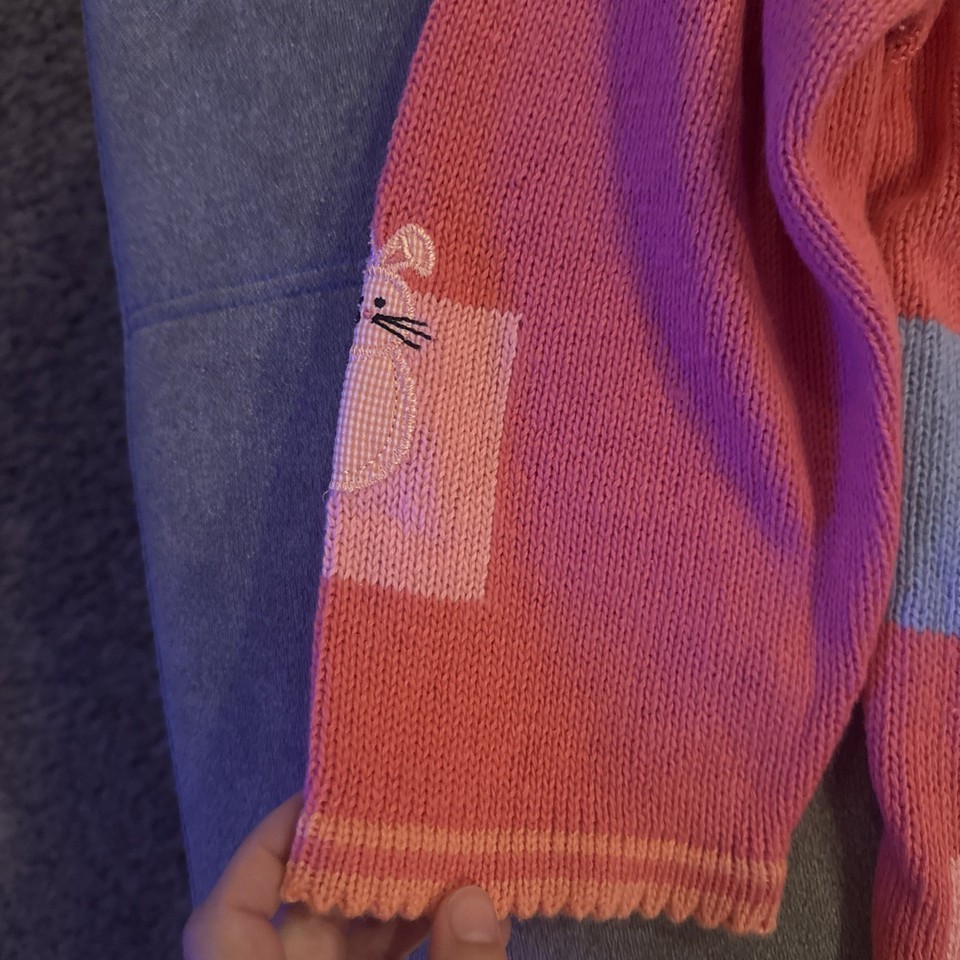 The Christopher Banks Knit Embroidered Easter Bunny Spring Cardigan Sweater in Pink is a feminine and festive addition to any woman's wardrobe. Made from a blend of ramie and cotton, this sweater features long sleeves and a bunny design embroidered on the front. The knit fabric adds texture and warmth, making it perfect for the spring season. The cardigan style with a collarless design and multicolor pattern gives it a whimsical and charming appeal, perfect for Easter celebrations or everyday wear. Size large