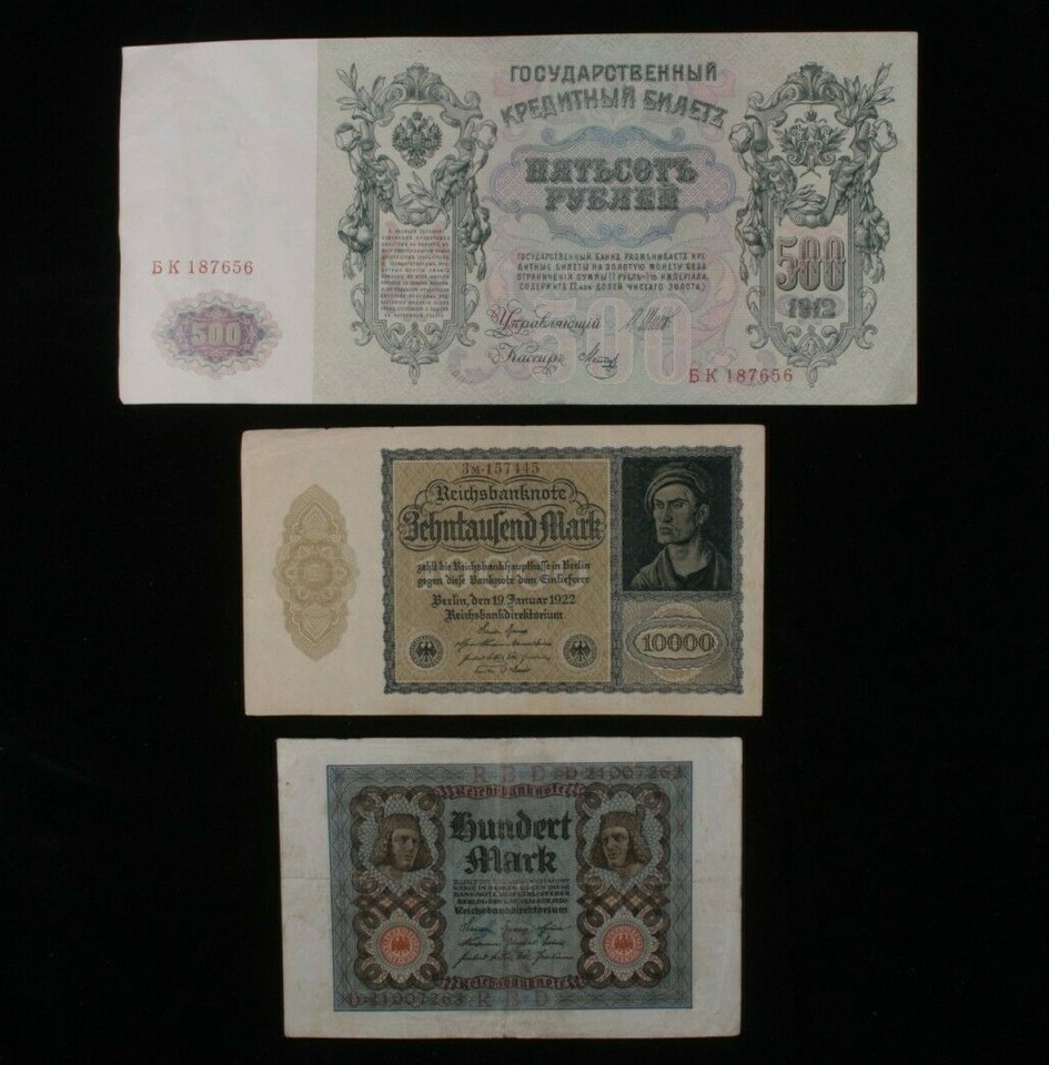 Russia & Germany Misc 3-Notes Currency Lot // Imperial Russia & Weimar Republic