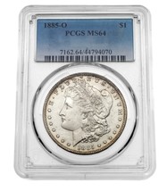 1885-O $1 Silver Morgan Dollar Graded by PCGS as MS-64