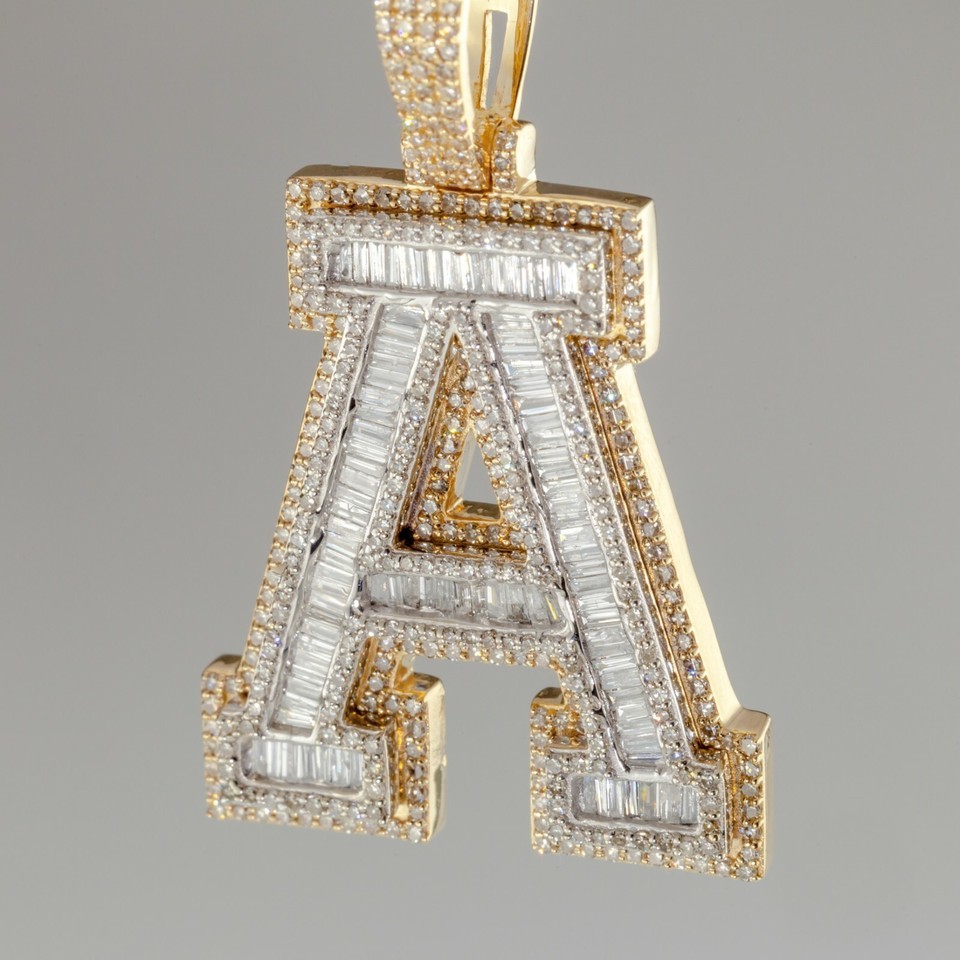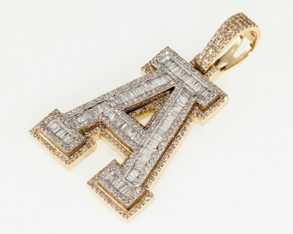 10k White and Yellow Gold Diamond Letter "A" Pendant TDW = 3.50 Cts