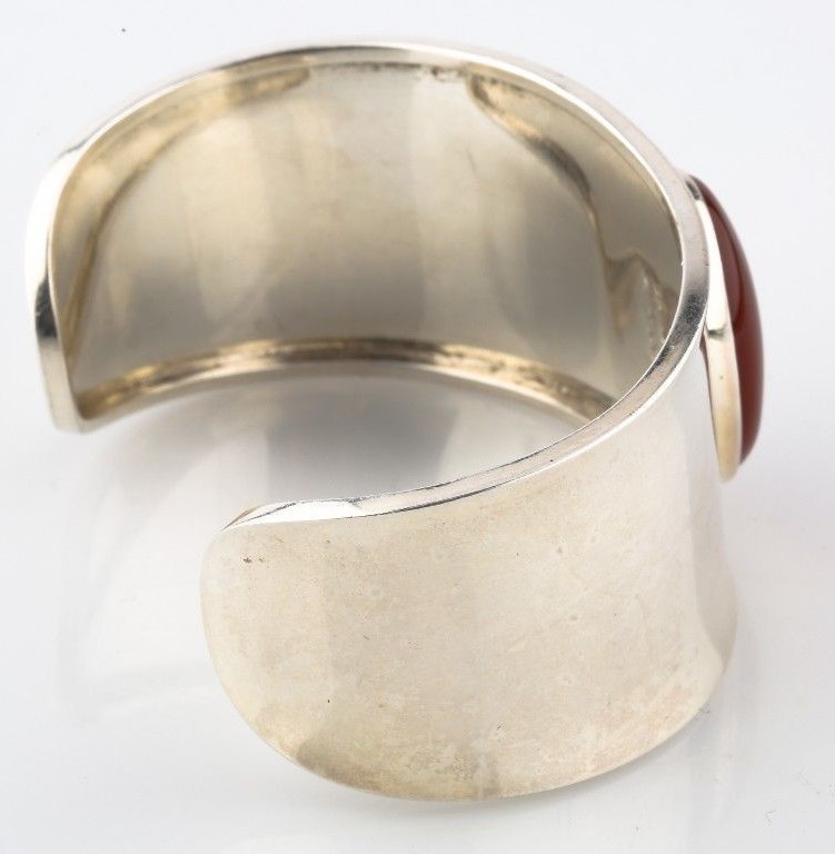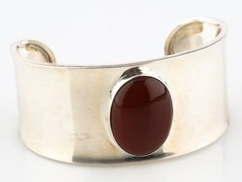 STERLING SILVER AND CARNELIAN CUFF BRACELET, MADE IN MEXICO
