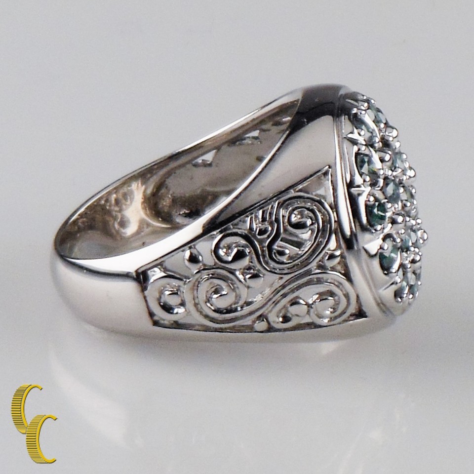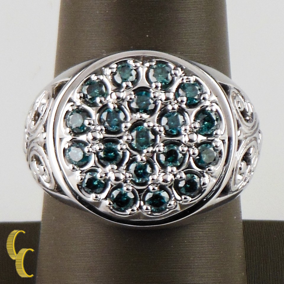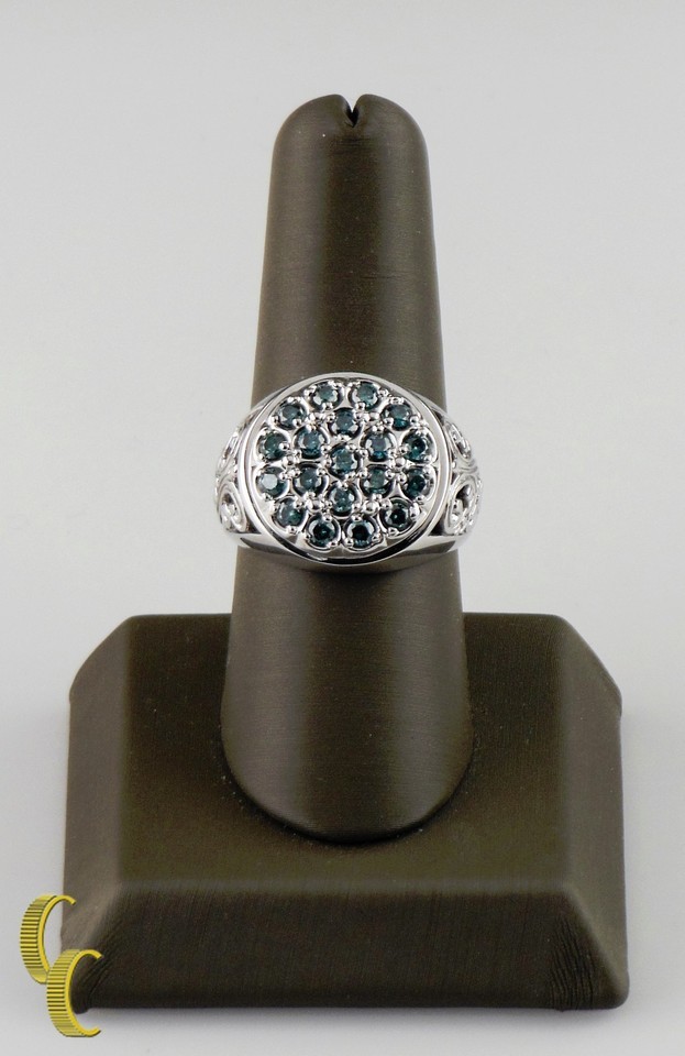 10K White Gold Color Enhanced Blue Diamond Plaque Ring Size 9.5 - Great Gift!