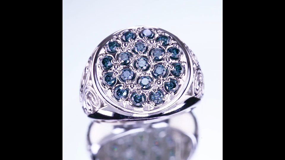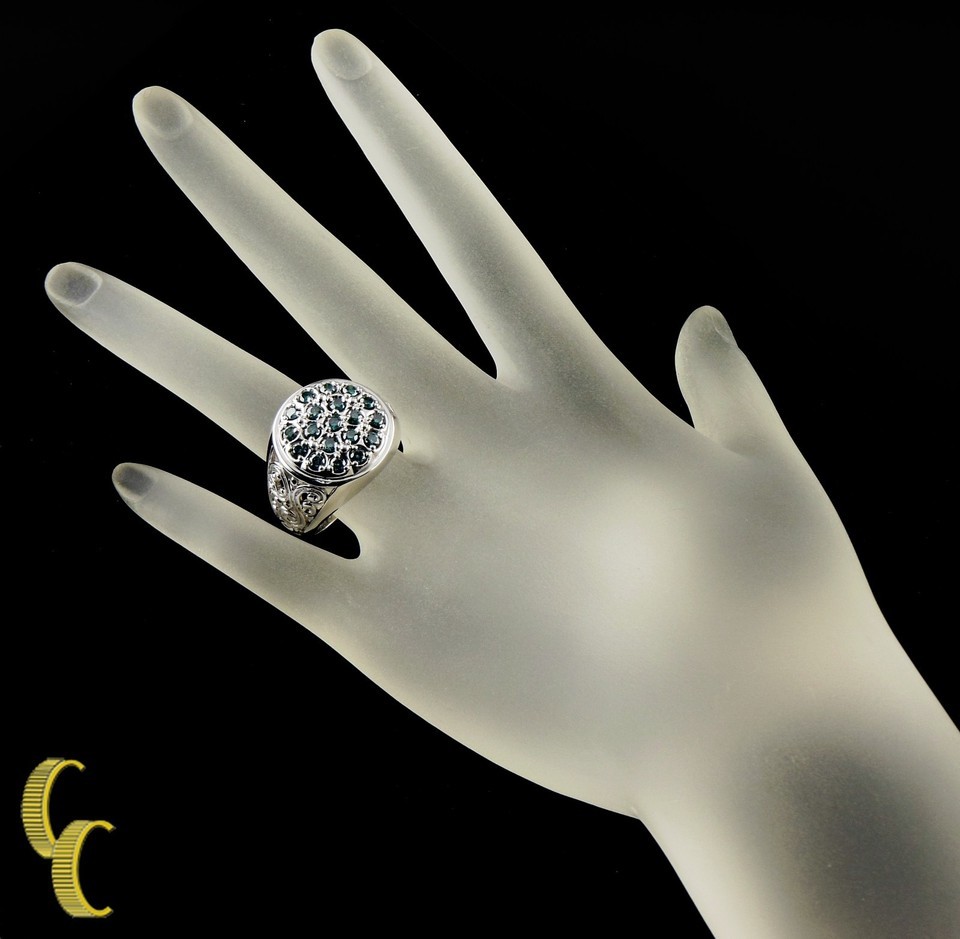 Authenticity Guarantee 10K White Gold Color Enhanced Blue Diamond Plaque Rin...