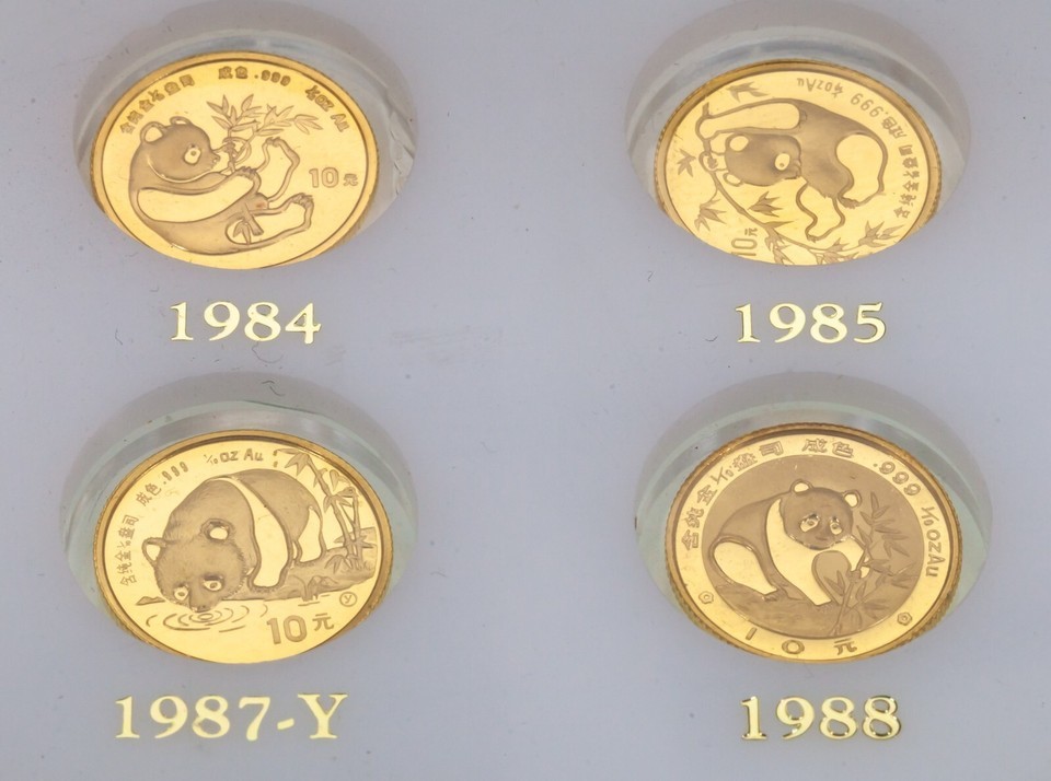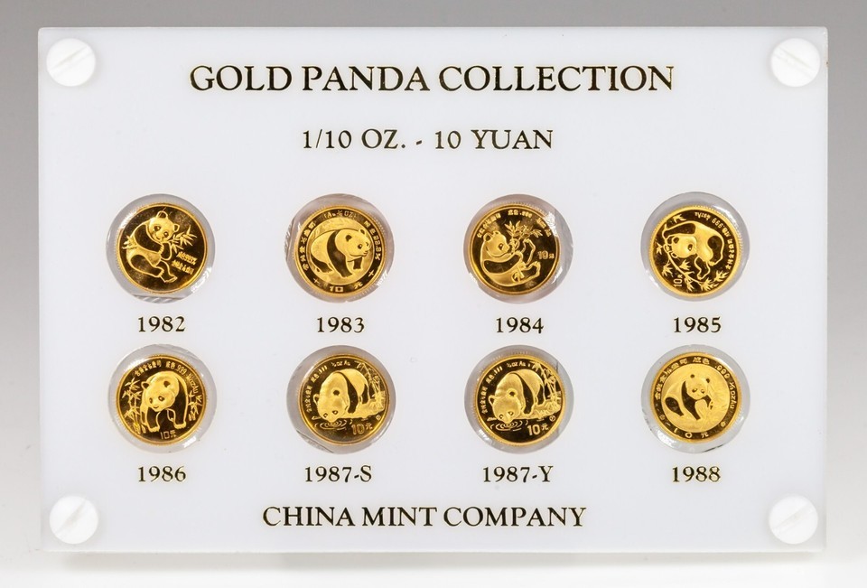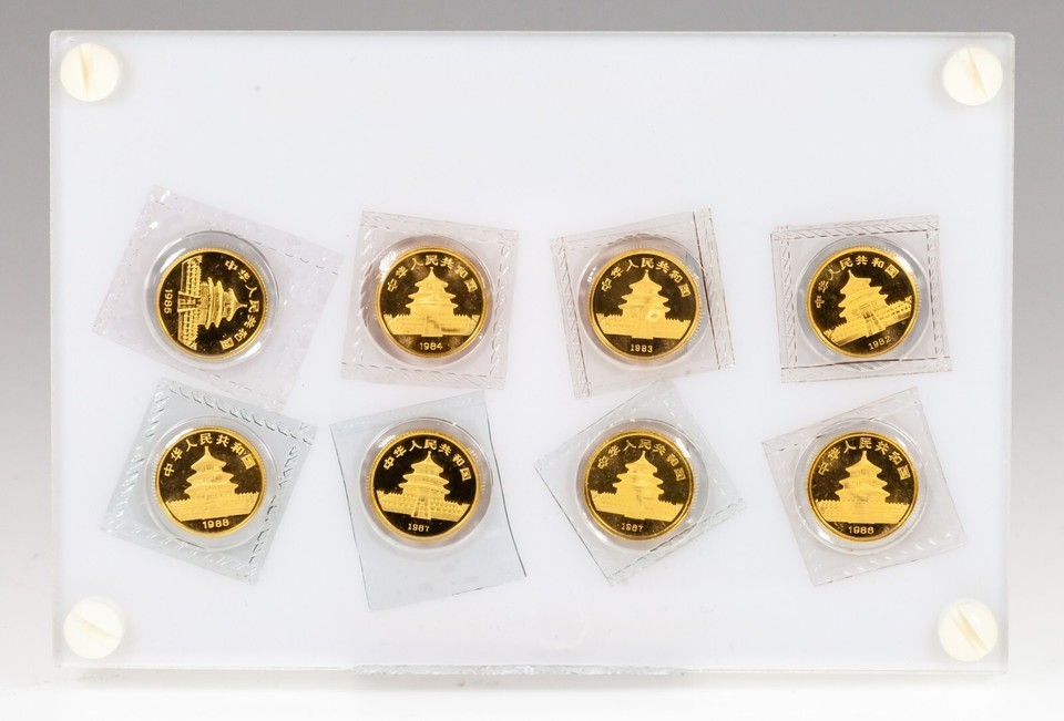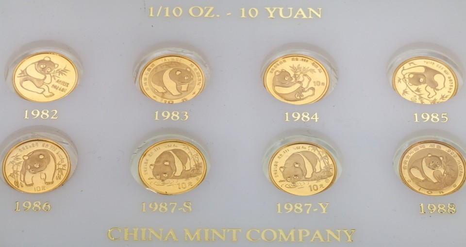 Lot of 8 1/10 Oz. Gold Pandas China Mint Company 1982 - 1988 in Box