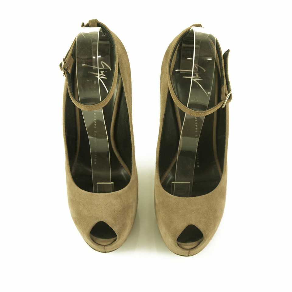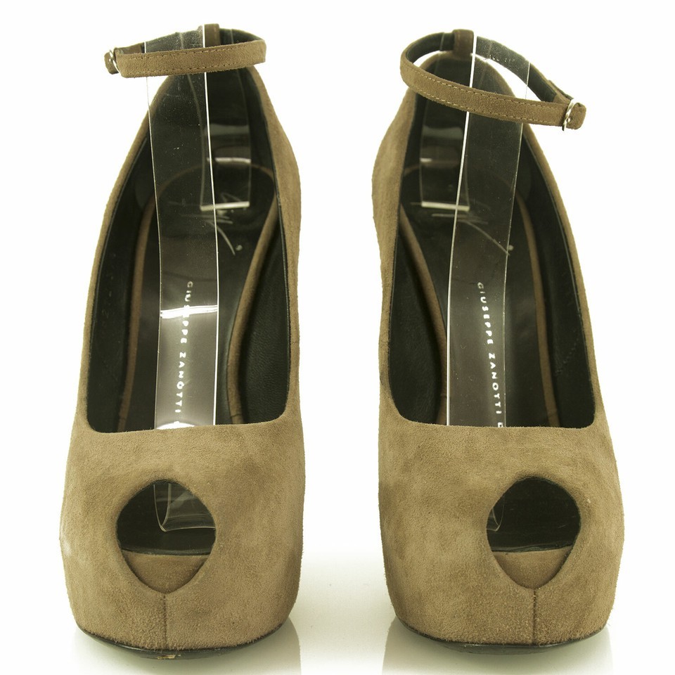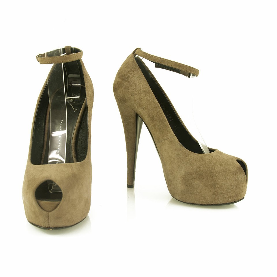 Authentic Giuseppe Zanotti Taupe Suede Leather Platform Pumps 37,5 Ankle closure