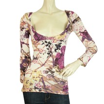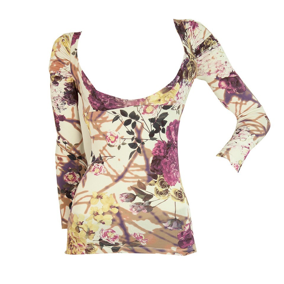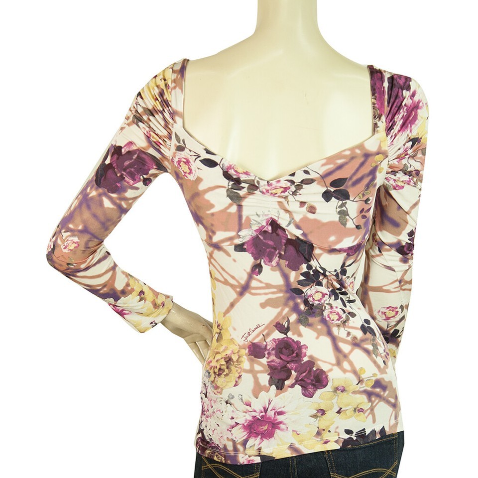 Just Cavalli Floral Long Sleeves Pleated Shoulders Fitted Top Blouse
