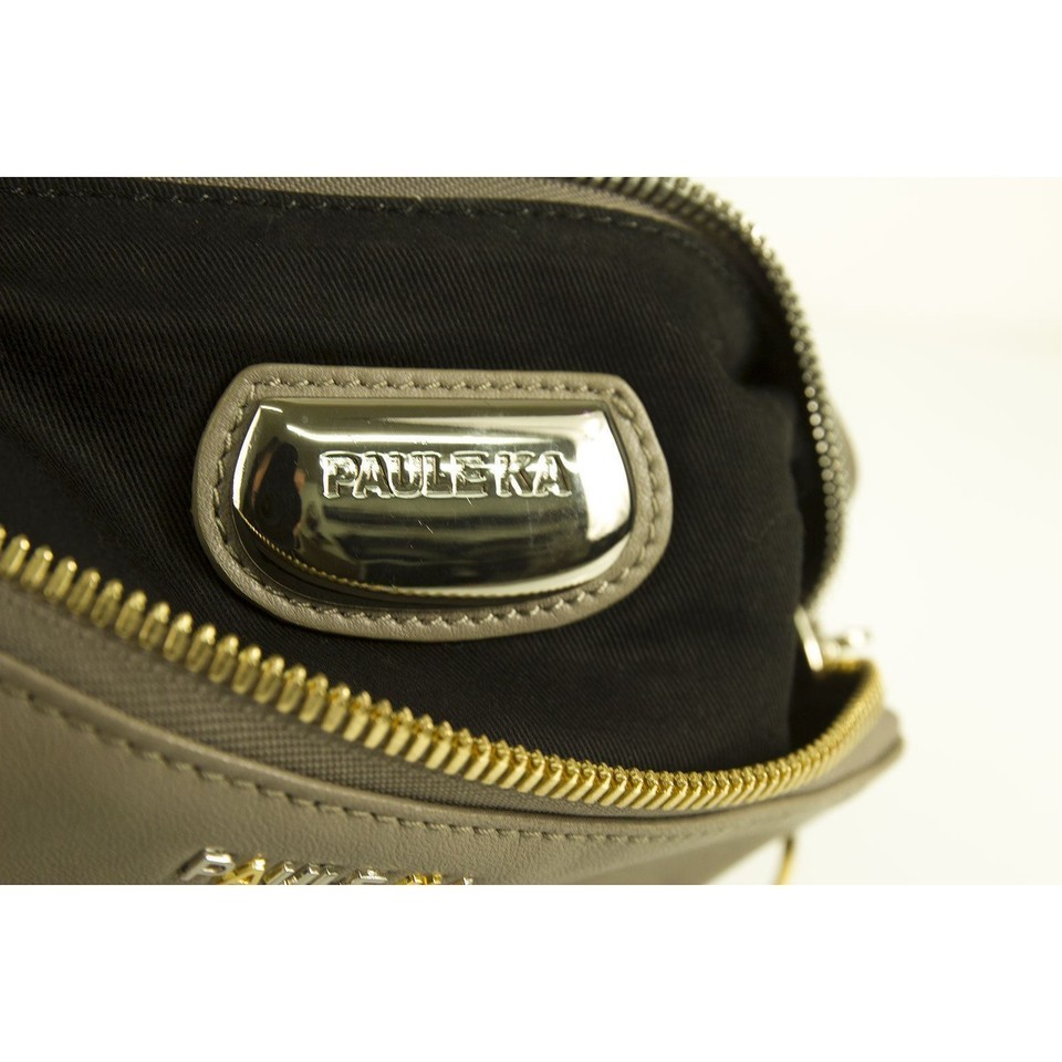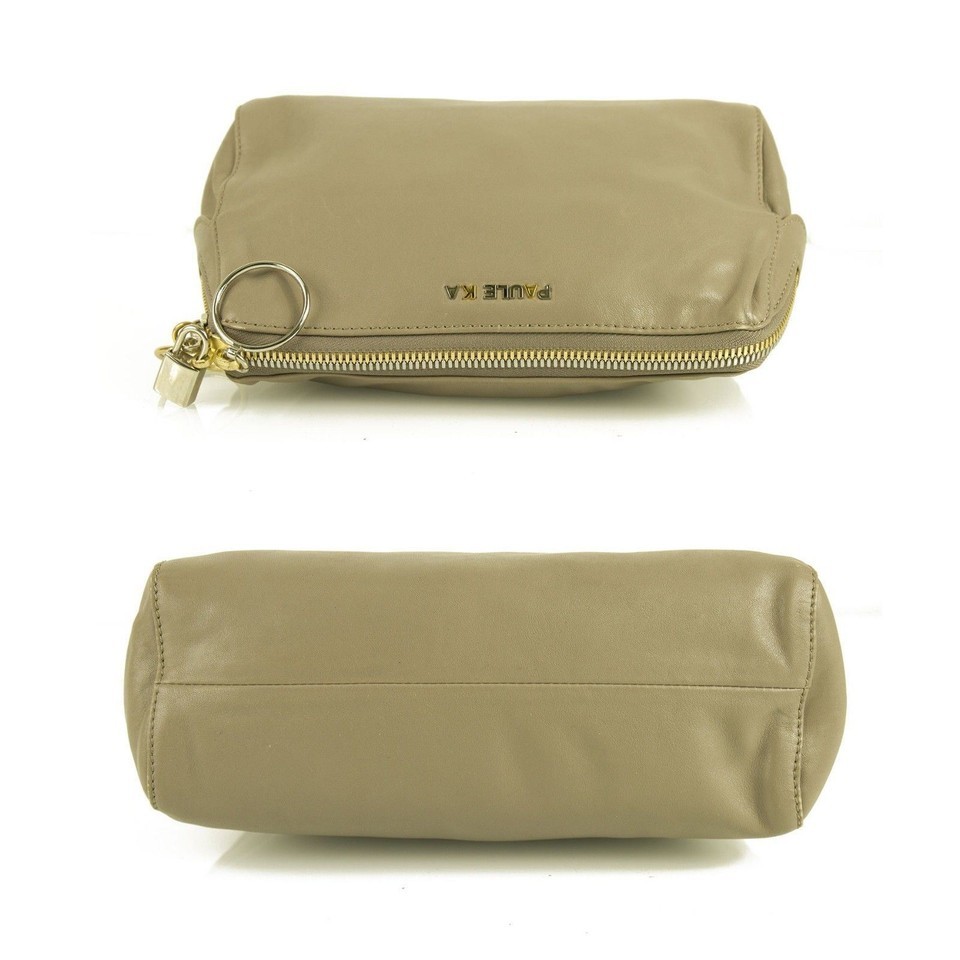 PAULE KA taupe leather with ring zipper pulls padlock Clutch bag Handbag