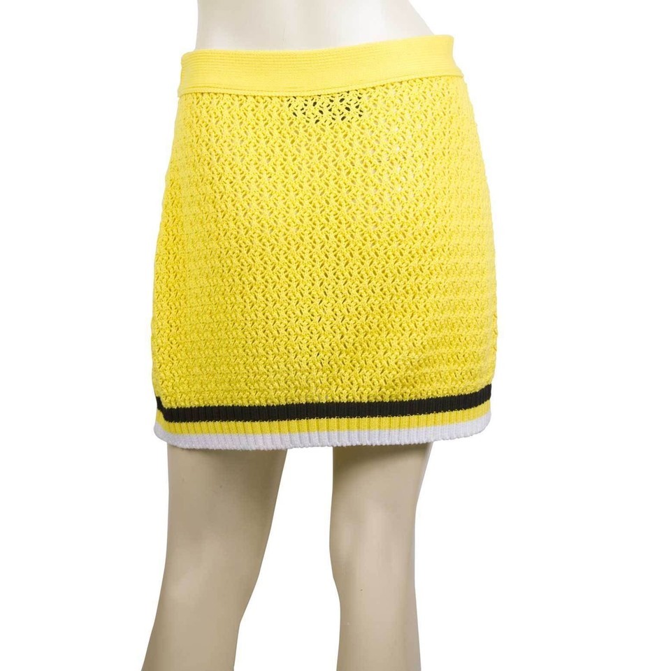 Philipp Plein Yellow Cable Knit Cotton Mini Skirt Skull Black White Stripes sz M
