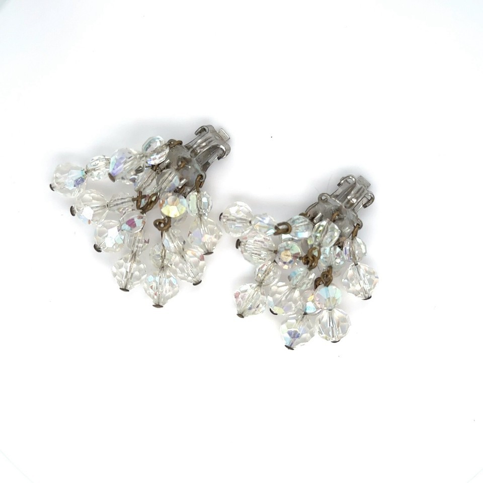 Clip irise sur des boucles d'oreilles avec des brins pendants de cristaux gradues.