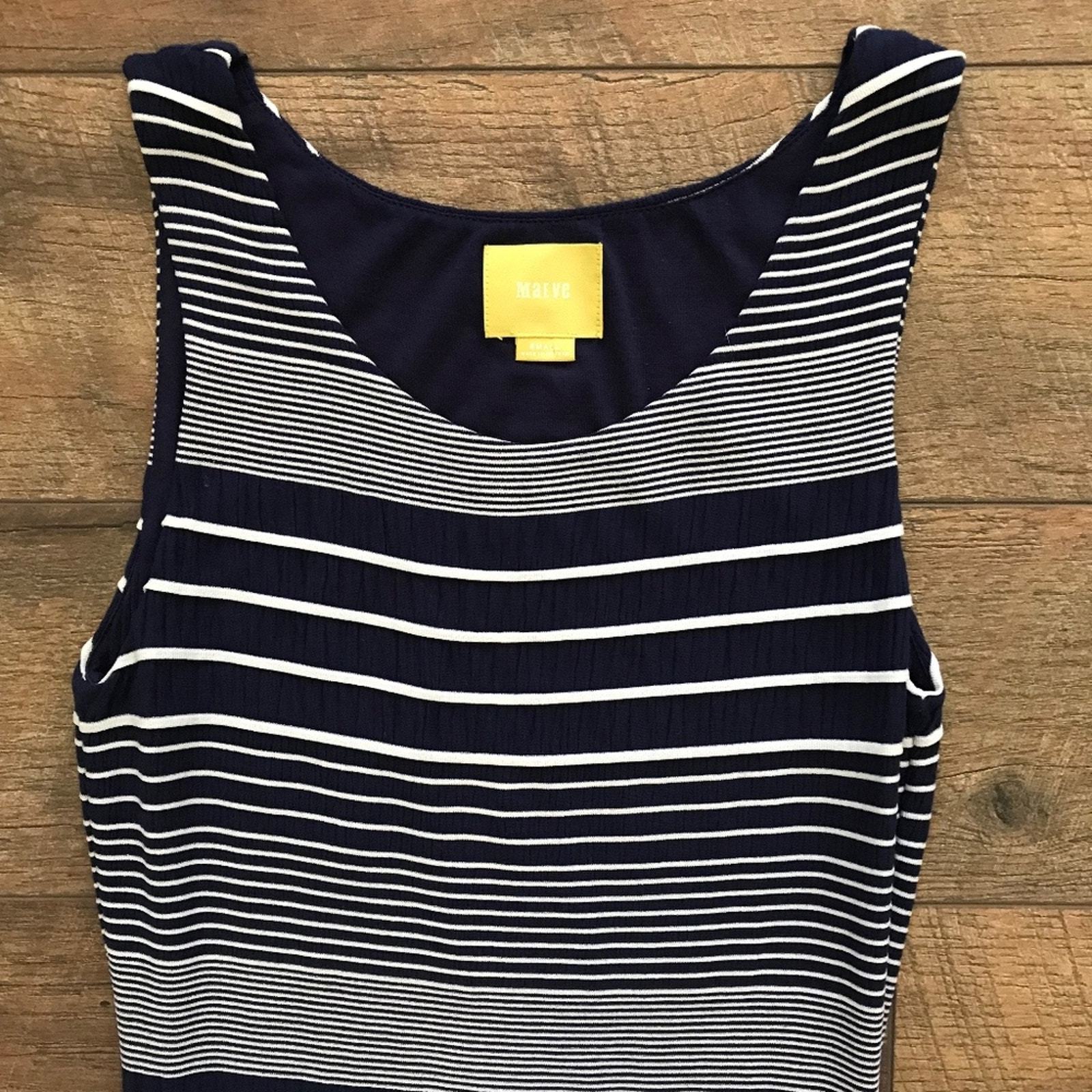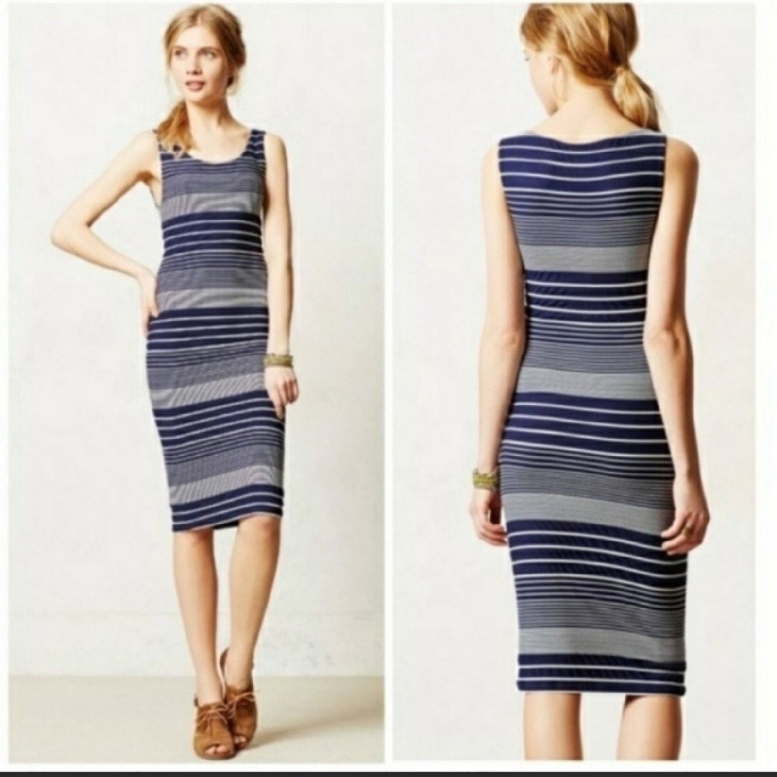 Anthropologie Maeve Edisto Stripe Navy Column Dress Small EUC