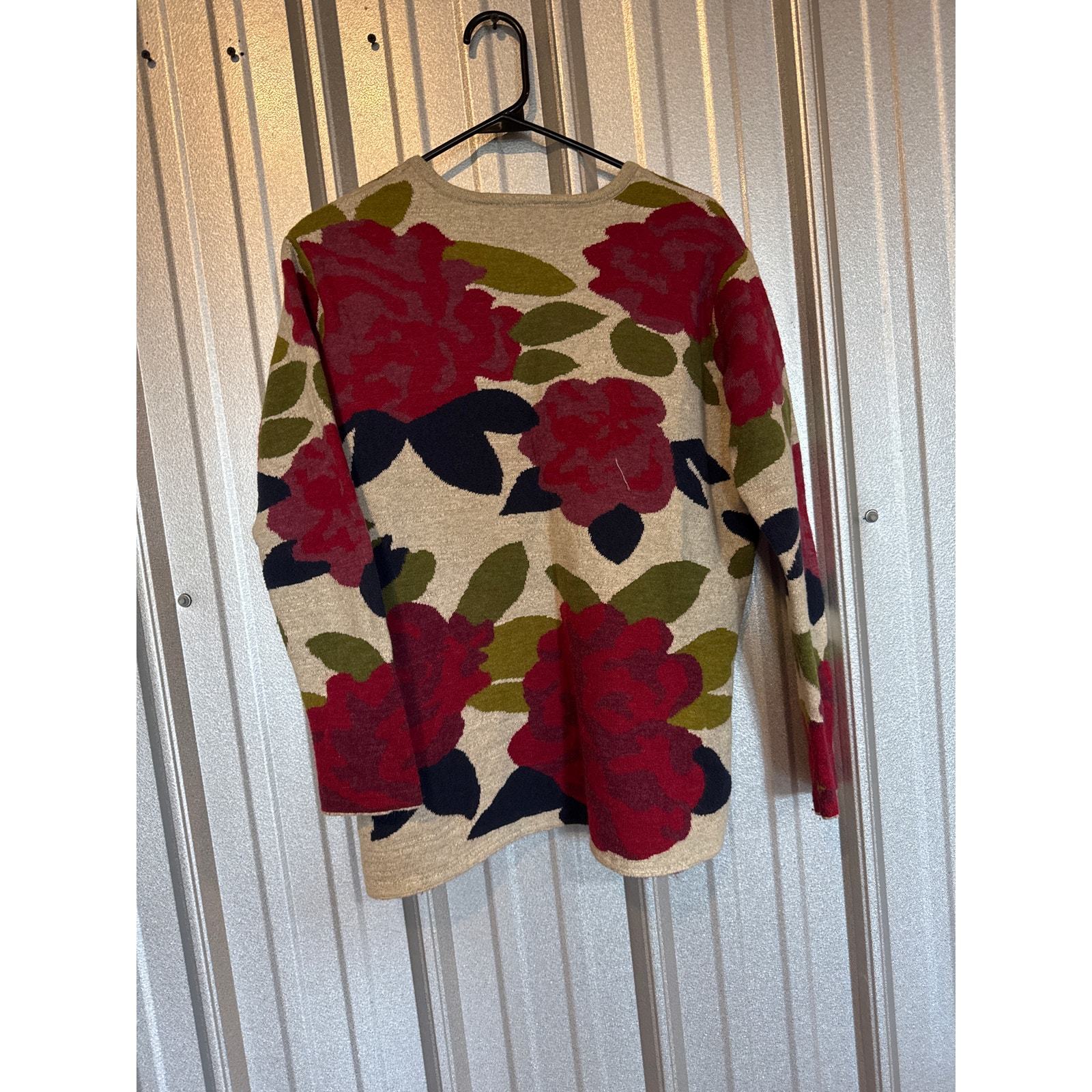 J Jill Floral Wool Alpaca Cotton Blend Sweater Petite Floral Womens Size PS