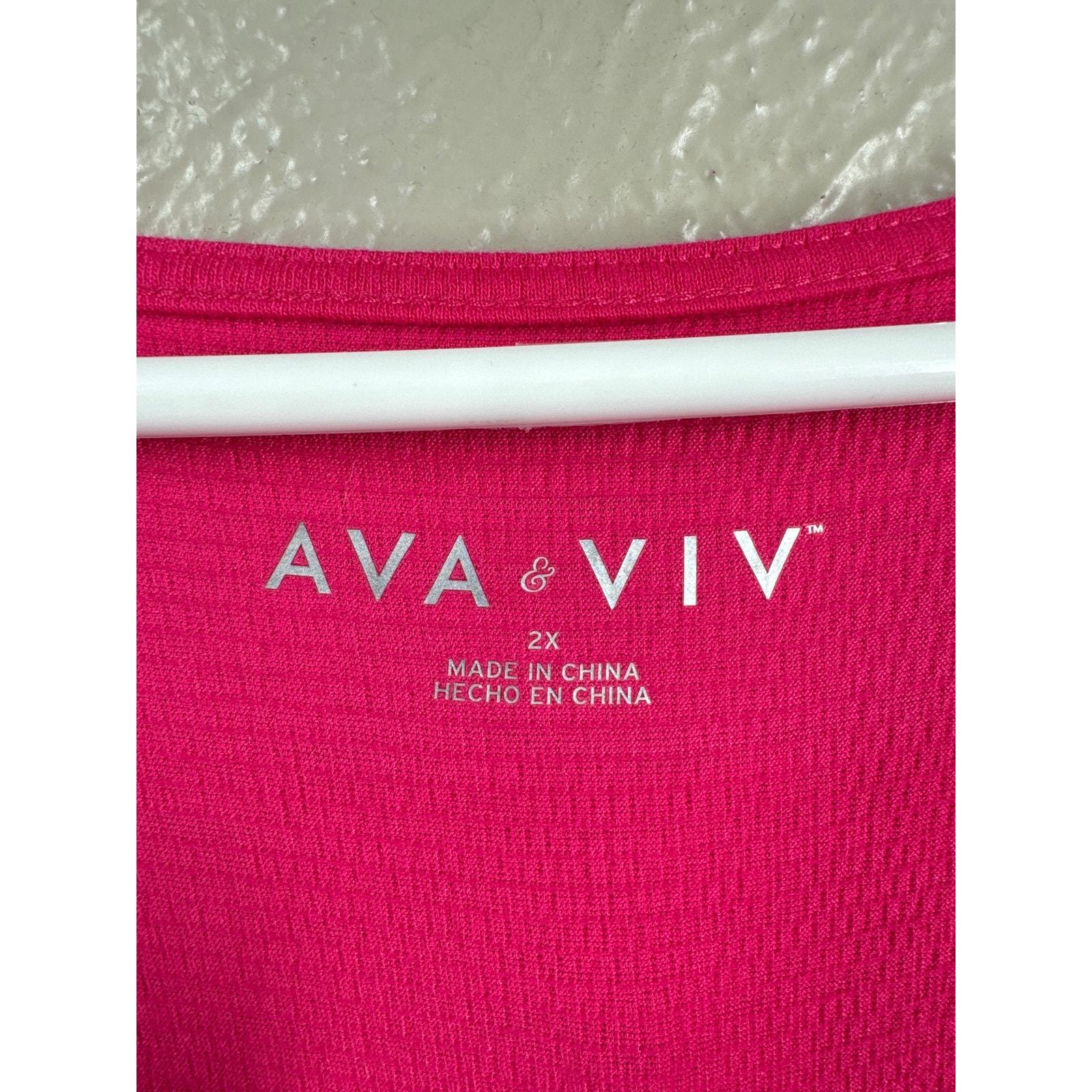 NWT Ava & Viv Shirt Women’s Pink Long Sleeve Sweetheart Tie Neck Plus Aize 2X