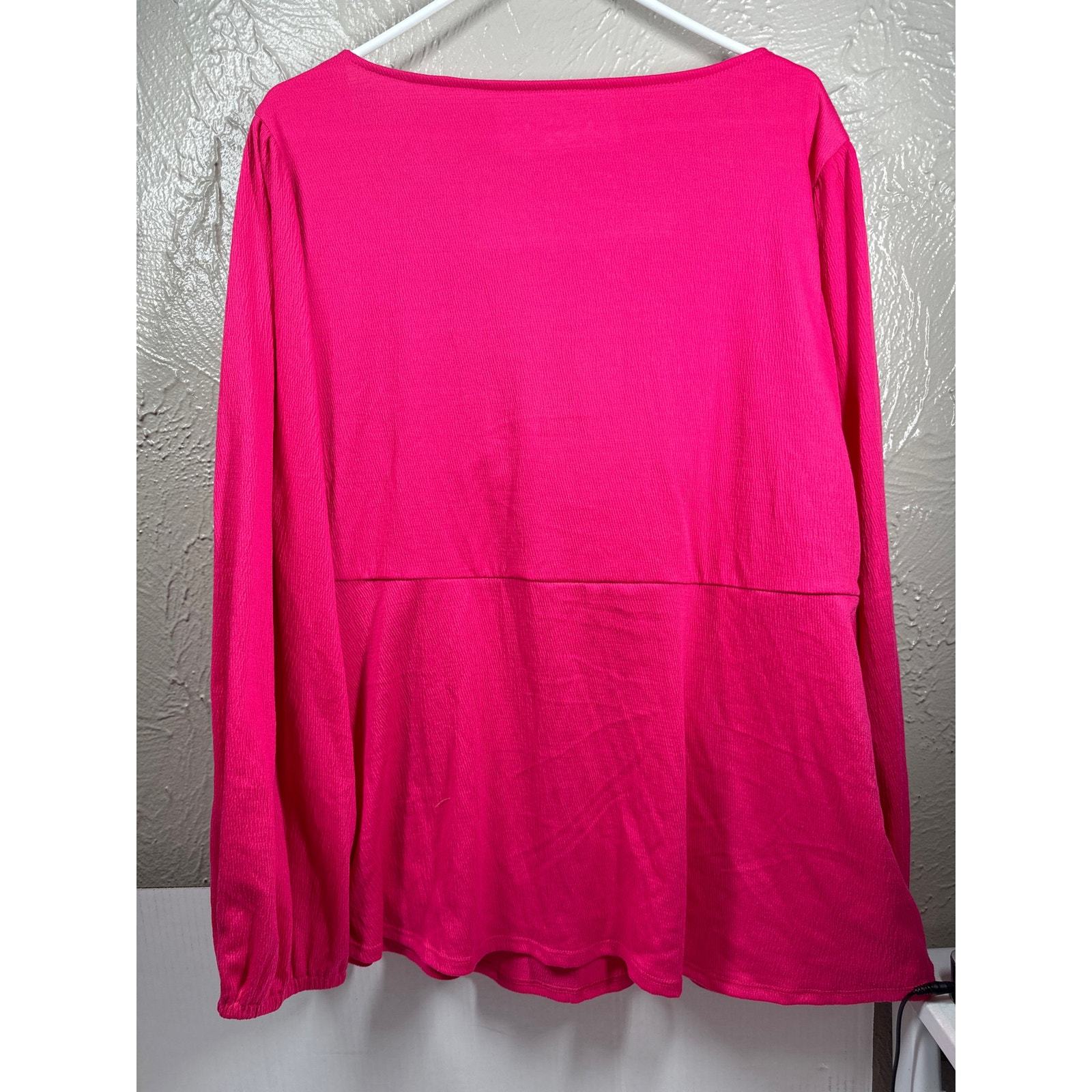 NWT Ava Viv Shirt Women?s Pink Long Sleeve Sweetheart Tie Neck Plus Aize 2X