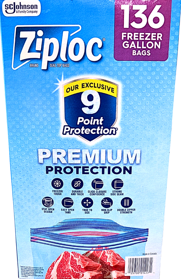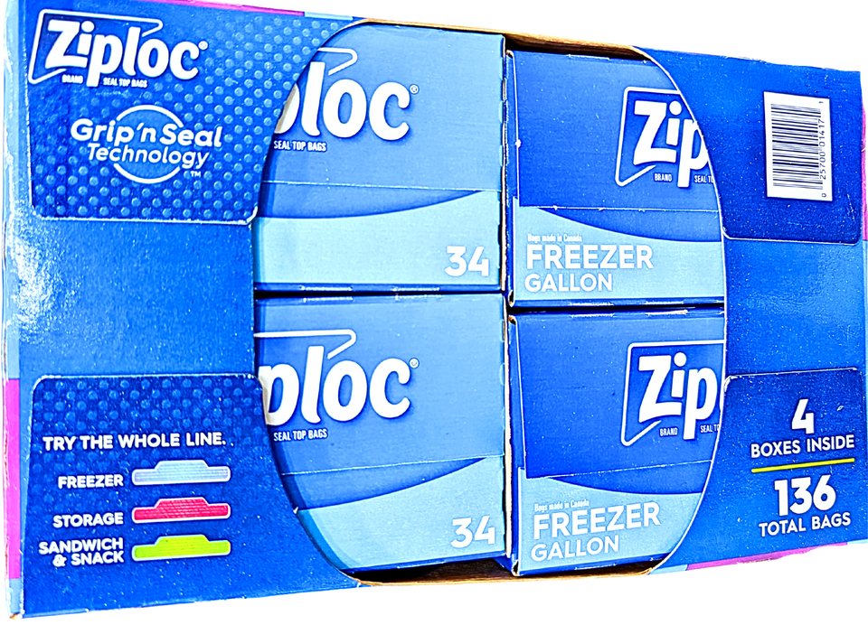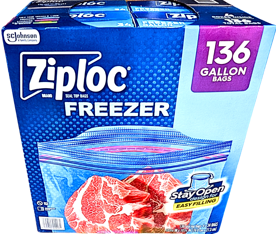 Ziploc Seal Top Gallon Freezer Bags BPA Free Microwave Safe 4x34 Total 136 Count