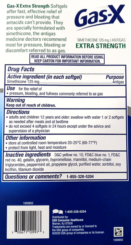 Gas-X Relieves Gas Fast Extra Strength Simethicone 125mg 120Softgels EXP 11/2026