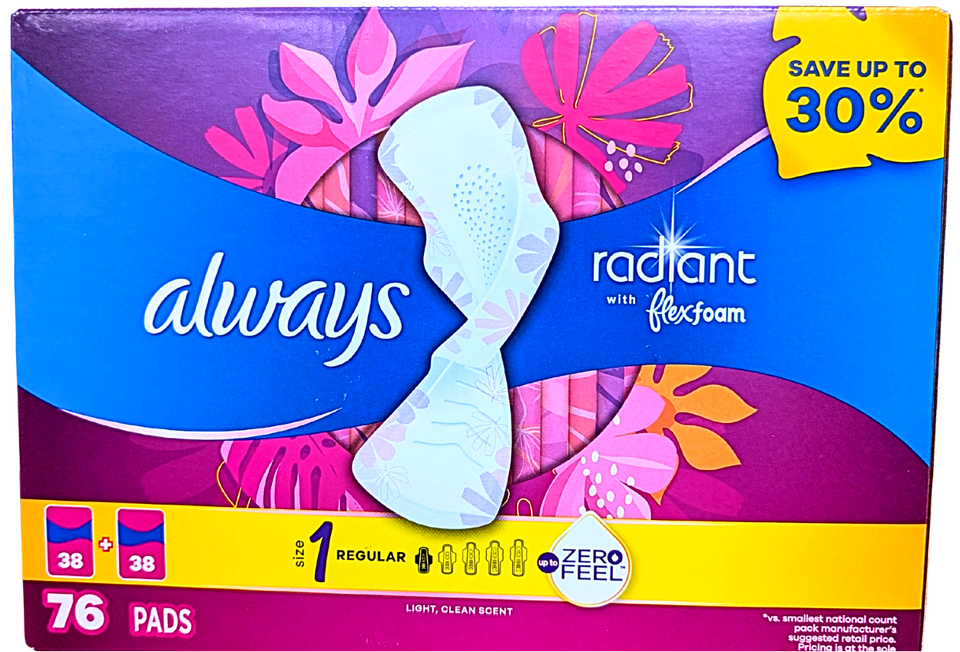 Always Radiant Regular Pads with Flexi-Wings Scented Size 1 76 Count
