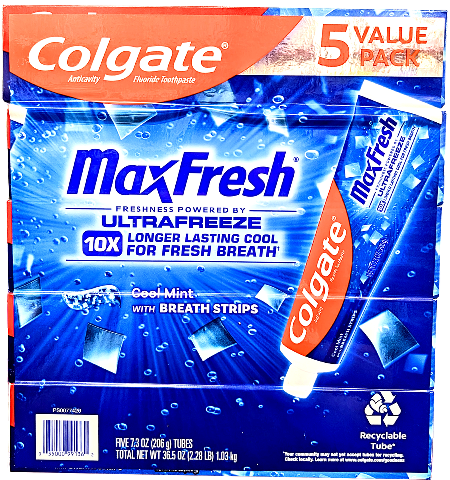 Colgate MaxFresh Toothpaste with MiniBreathStrips Cool Mint 5 x 7.3 Oz