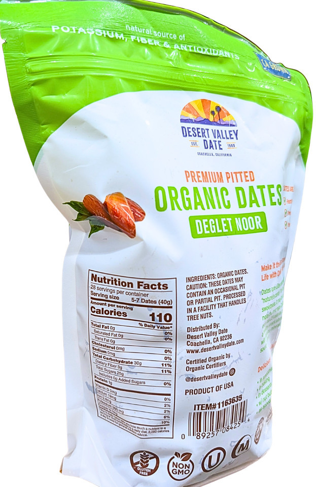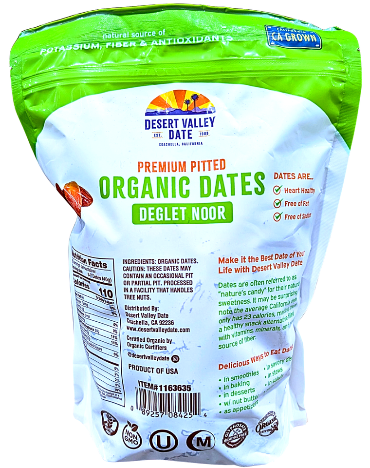 Desert Valley Date Organic Premium Pitted Dates 40 Ounce Bag EXP 03/2027