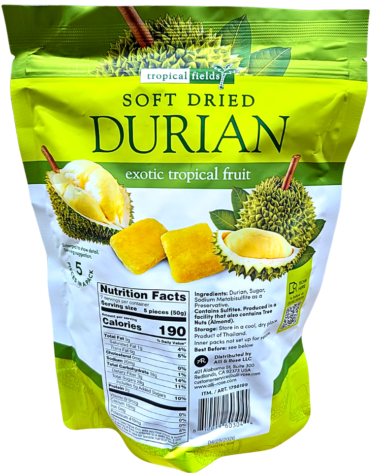 Tropical Fields Soft Dried Durian Exotic Fruit 7x1.76 Ounce Packs EXP 04/2026