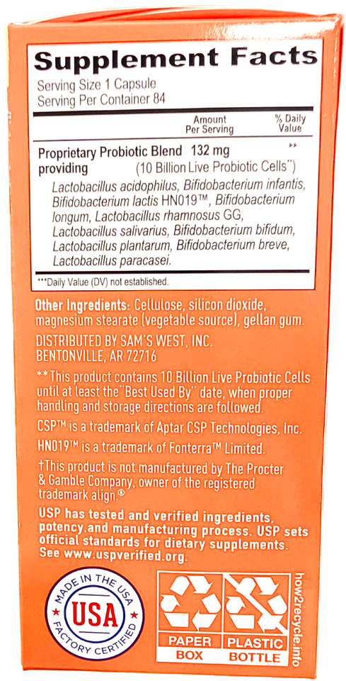 Member's Mark 10 Strain Probiotic Capsules 84 Count EXP 05/2027