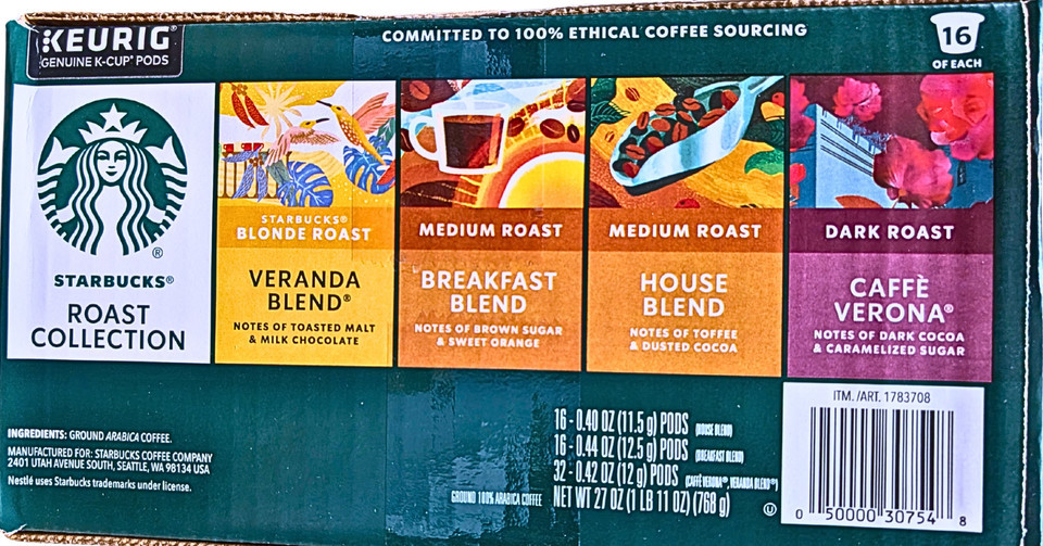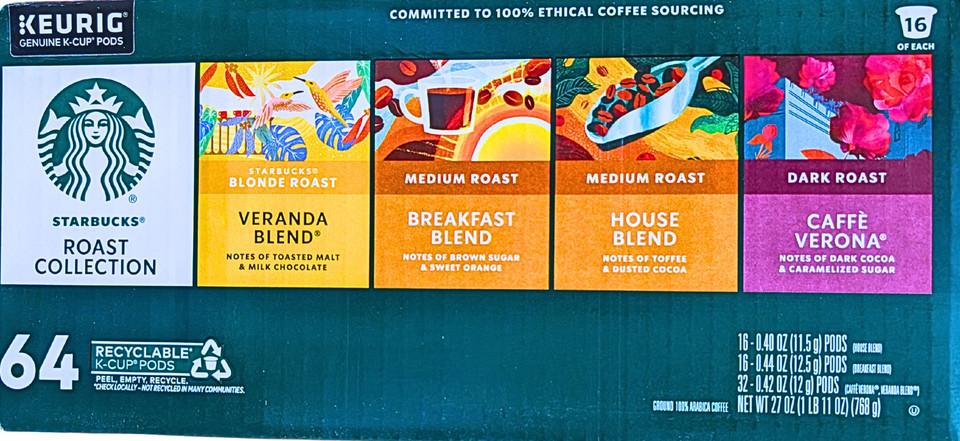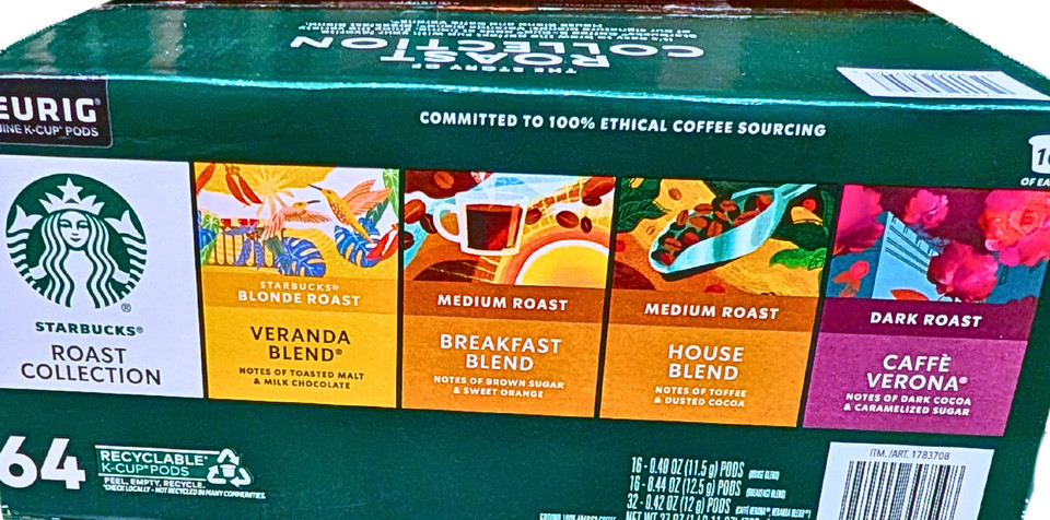 Starbucks Variety Pack Roast Collection K-Cup Pods 64 Count EXP 07/2026