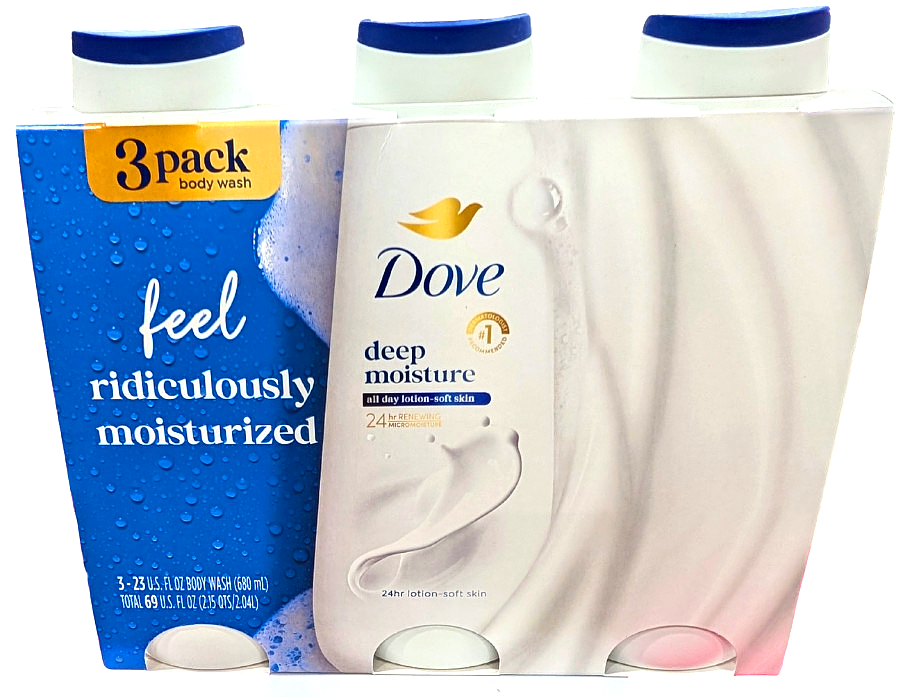 Dove Deep Moisture All Day Soft Skin Body Wash 3 Packs-23 Oz