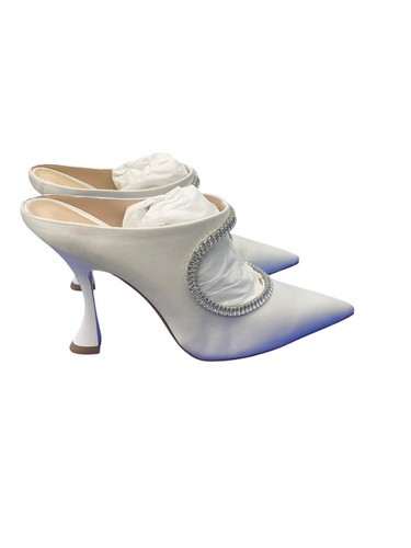 Stuart Weitzman Xcurve Crystal 100 Mule Satin SB647 White/Clear/White Size 8.5 B