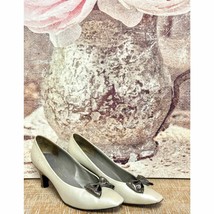 80s/90s VTG Charles Jourdan Paris Leather Pump Cream/Bronze w/ Bow 7 1/2