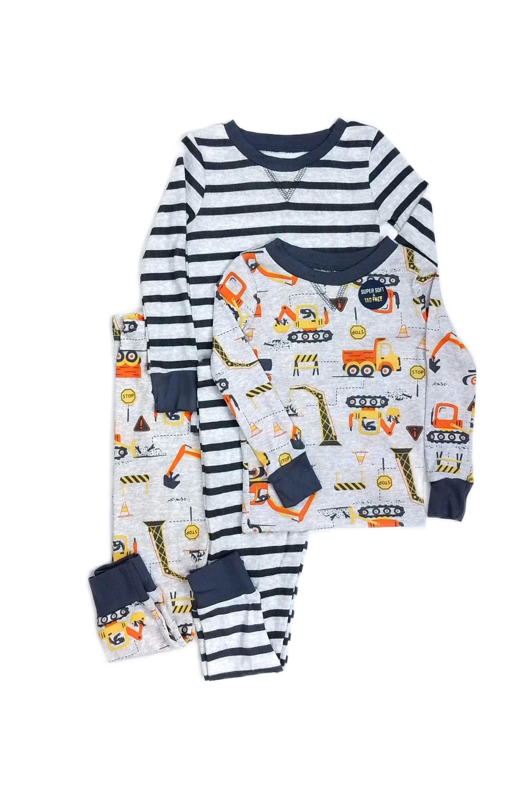 Toddler Boy's Construction Vehicles and Stripes 4-Piece Soft Pajama Set
