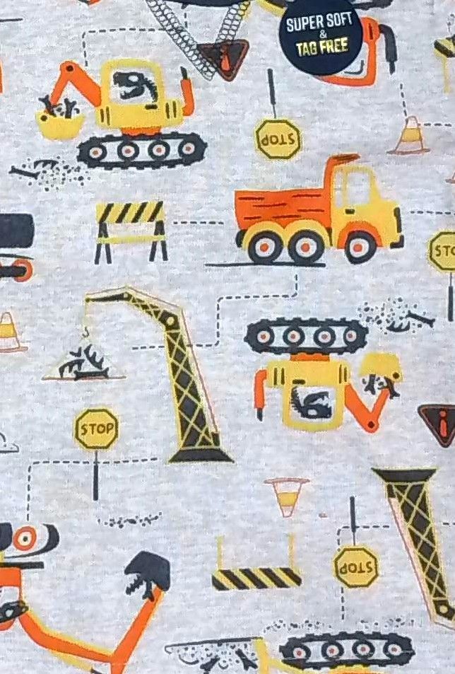 Your little guy will love the fun and colorful construction vehicle-themed and striped print.
