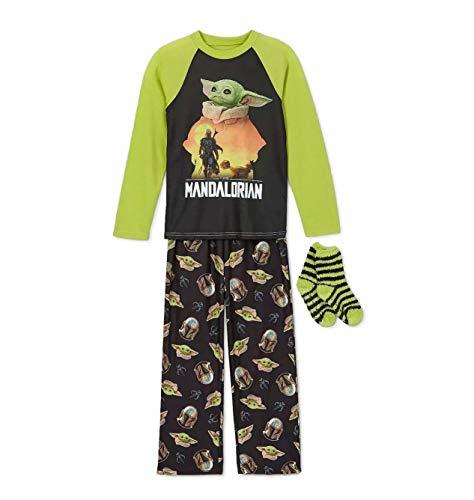 They'll sleep soundly with 'The Child' Baby Yoda and the Force by their side! Features a fun and dimensional Baby Yoda 'The Mandalorian' themed graphic. Raglan style long sleeves and of a soft polyester jersey fabric. Coordinating flannel pajama pants with a cool Yoda print throughout and elasticized waistband for a custom fit. Includes a pair of soft, plush fleece socks with gripper bottoms.