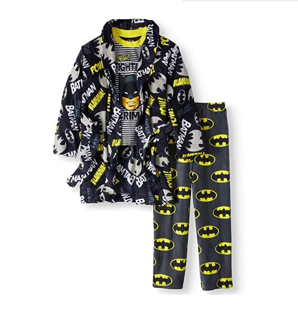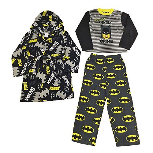 He'll be super comfy fighting crime with his favorite Gotham crusader! The set features a cozy and ultra-soft robe with a fleece pajama set. Robe is hooded for extra warmth and comfort. 100% Polyester.