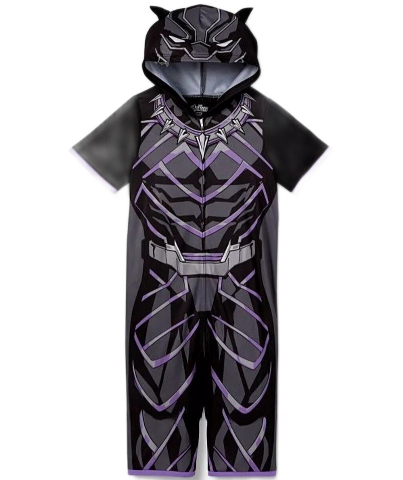 Black Panther Boy's Lightweight Polyester Costume Hooded Pajama Short One-Piece