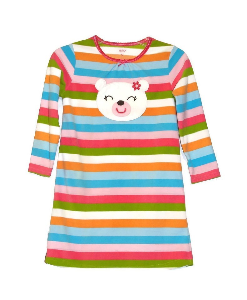 Carter's Girl's Small Fleece Striped Teddy Bear Nightgown, Size 4/5