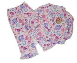 She'll love the fun and colorful print along with a chest patch featuring Sofia and Amber. The coat-style pajama top features bright pink glittery buttons fully down the front. Ruffled trim adds the charm. Full elasticized waistband on the coordinating pajama pants. Of an ultra-soft and cozy flannel polyester.