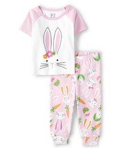 Toddler Girl's Pink Easter Bunny Rabbit and Egg Print Snug Fit Cotton Pajama Set