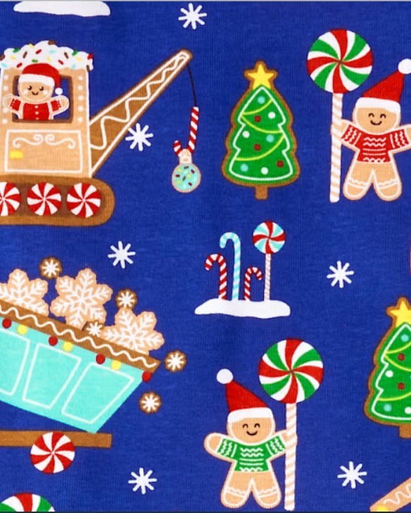 Your little guy will love the fun combination of construction, gingerbread, and Christmas motifs. The pajama pants feature a colorful print against a bright blue background. They have an elasticized waistband for a custom fit and are crafted of soft and cozy 100% cotton.