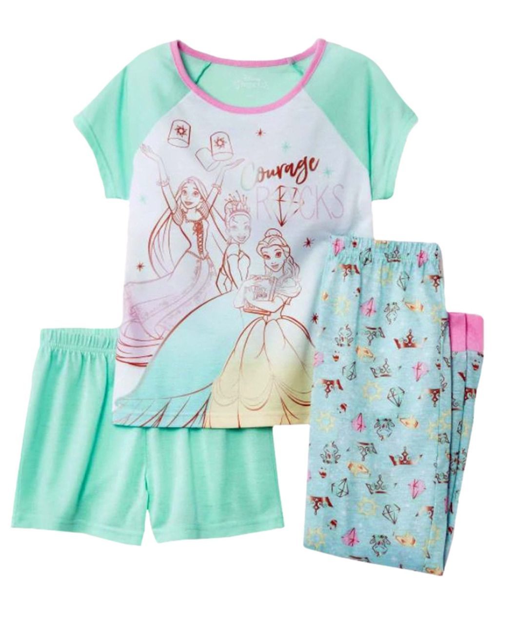 Disney Princess Rapunzel, Tiana and Belle Girl's 3-Piece Pajama Set