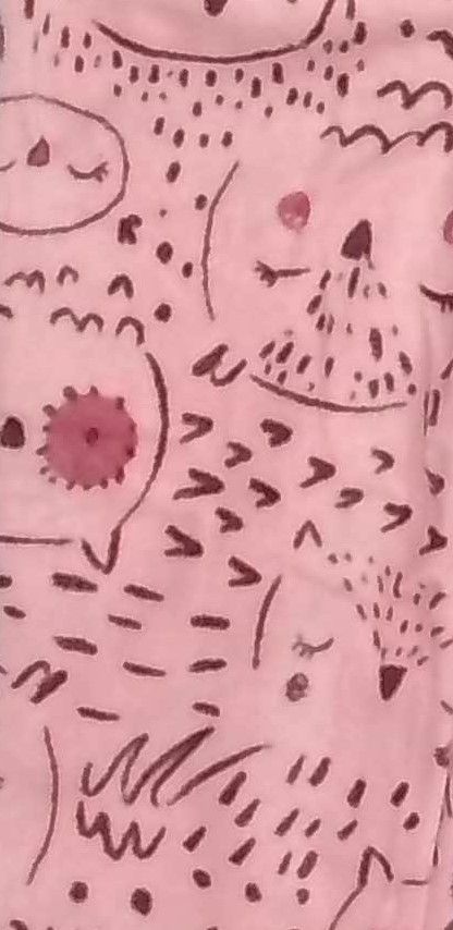 Features a roomy polyester jersey top in stripes with a tie front and small heart-shaped pocket.