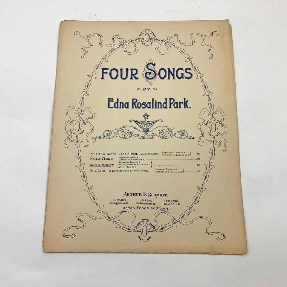 Four Songs Edna Rosalind Park A Memory Voice Piano Sheet Music 1907