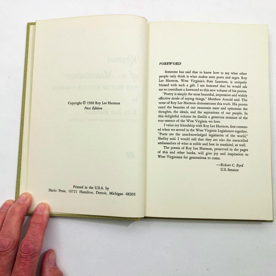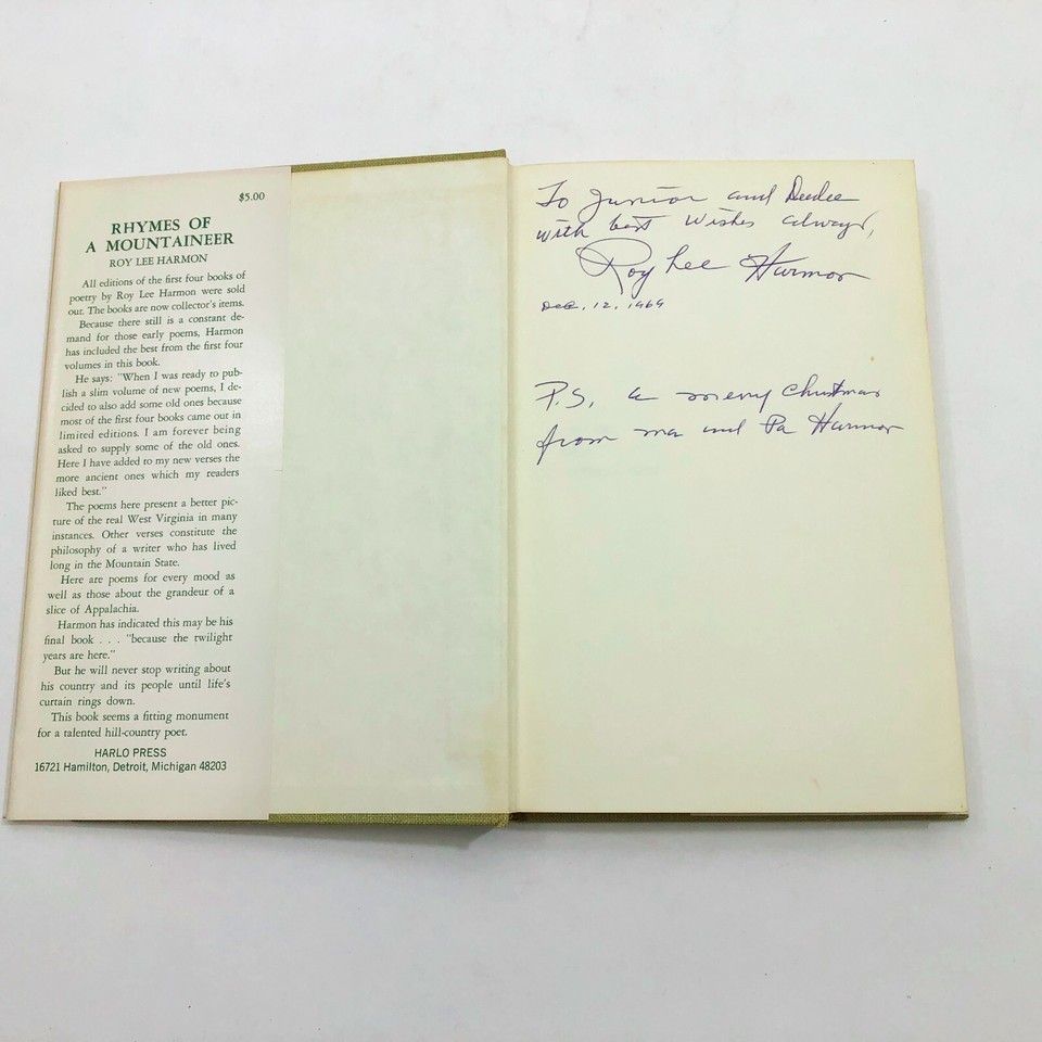 Rhymes Of A Mountaineer Roy Lee Harmon HBDC 1968 Signed 1st Ed Poems Poetry