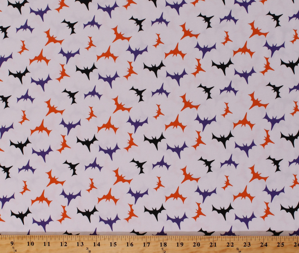 Jersey Knit Bats Purple Black Orange on White Stretch Knit Fabric BTY D342.16