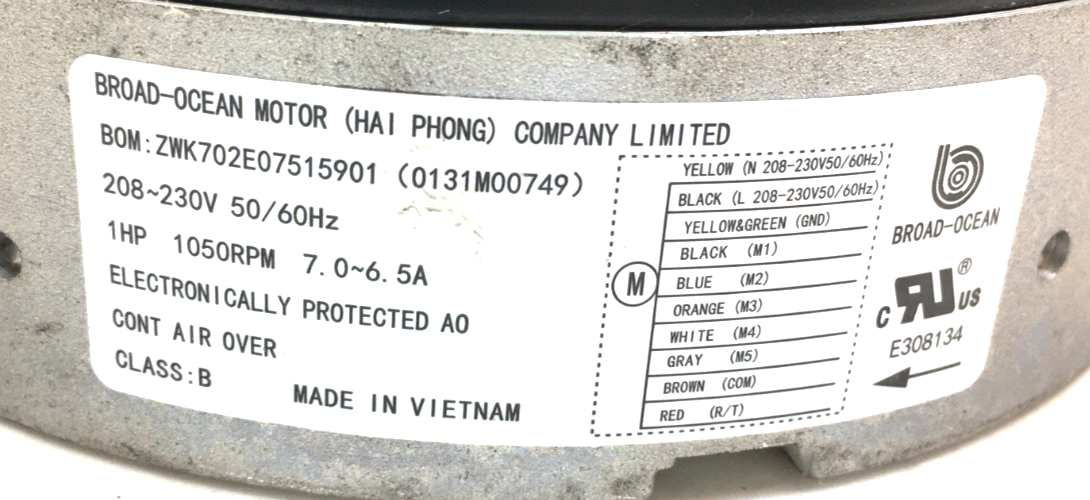 This is BROAD-OCEAN ZWK702E07515901 ECM Module ONLY 0131M00749 KMSAH011D01 208/230V 1HP used part.