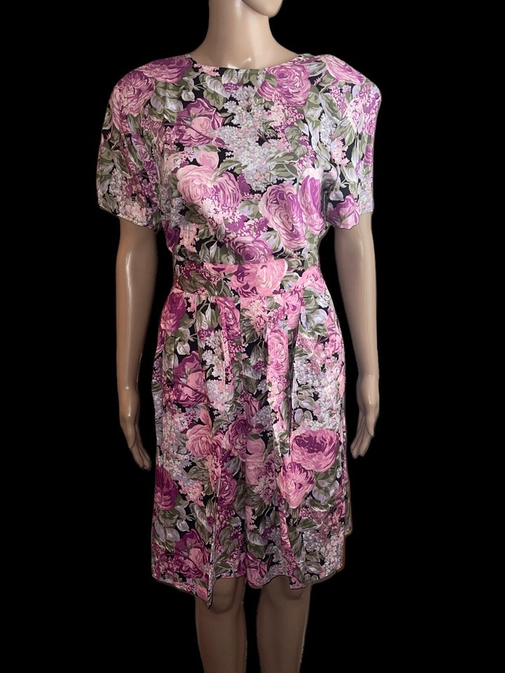 VTG 80s Langtry Floral 2 Piece Jumper Shorts Blouse Pink Flowers Medium Mom